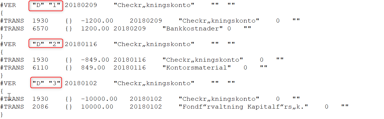 I detta exempel så kommer verifikatnummer att bli D-1, D-2 och D-3.