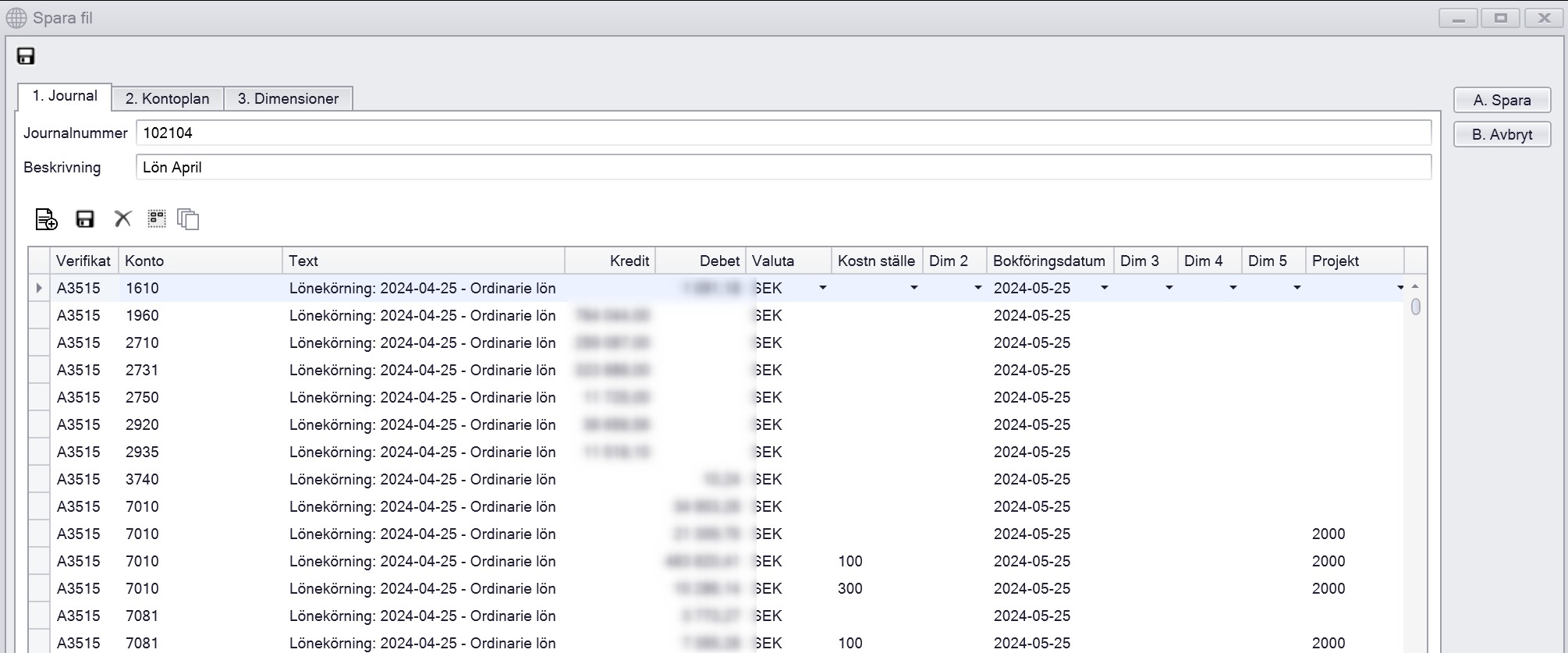 När journalrader är skapade så väljer du om du vill spara journalraderna.