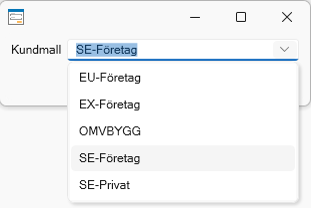 Man väljer vilken som är standard som ska föreslås när man skapar t.ex. en kundorder.