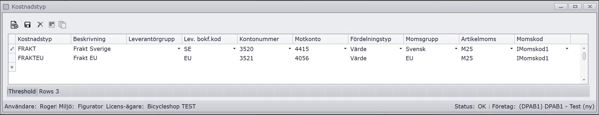 | Kostnadstyp | Typ av kostnad. Sätts upp enligt ovan. |