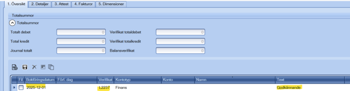När jag skulle bokföra godkända leverantörsfakturor i företaget ser jag ett verifikat utan konto, belopp, leverantör etc. Varför och hur har detta verifikat skapats?