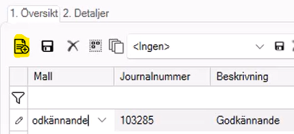 Du ska bara skapa journalen, sedan i journalen ska du bara trycka på knappen Hämta, inte skapa en ny rad.
